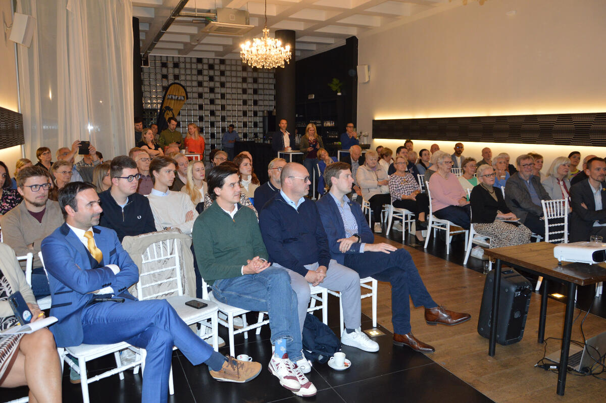Enkele sfeerbeelden van het aperitiefgesprek waarbij minister Anneleen Van Bossuyt kwam spreken over asiel, migratie en integratie. Dank aan alle aanwezigen!