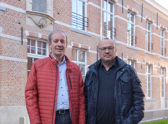 Burgemeester Lieven Dehandschutter en gemeenteraadslid Tchantra Vandewalle, voorzitter en lid van de raad van bestuur: ‘Dit titanenwerk is de vrucht van een intense samenwerking van publieke overheid (stad, Interwaas), sociale huisvestingsmaatschappijen en de private sector. Het omvormen van leslokalen met respect voor erfgoed is zeer goed gelukt. Ook onze stadsschouwburg en academies krijgen hier een plekje in een rustige en mooie omgeving.’